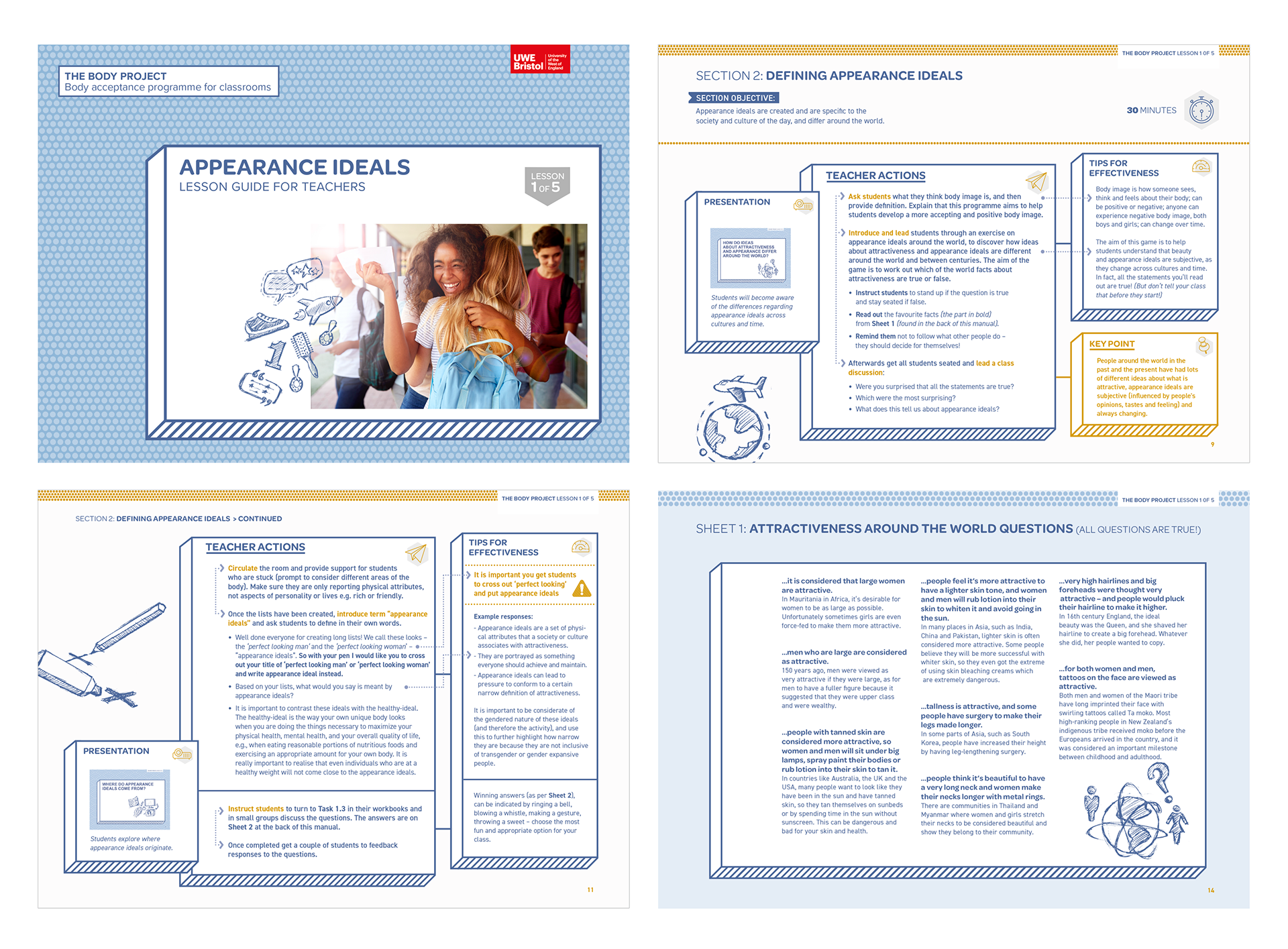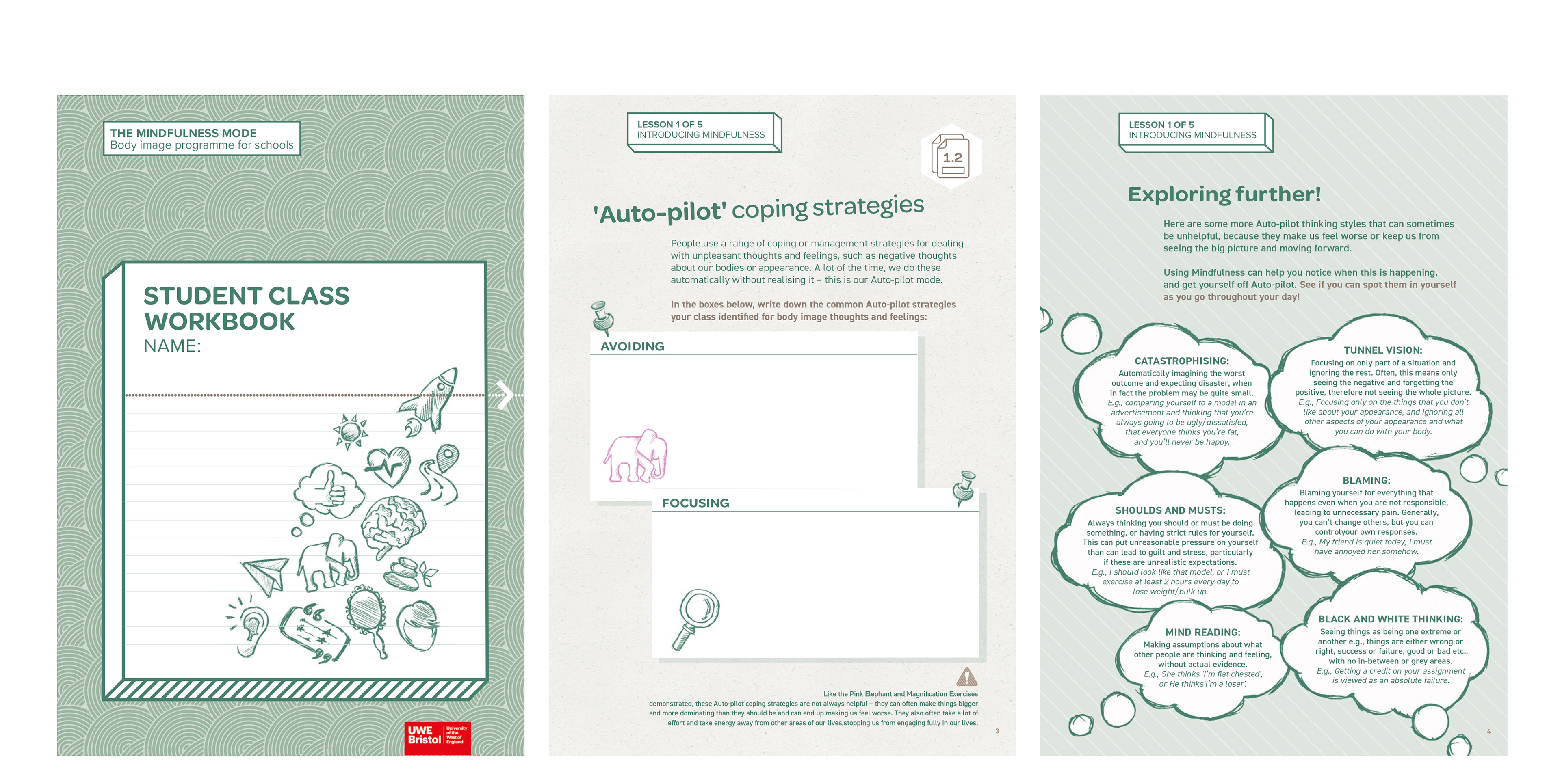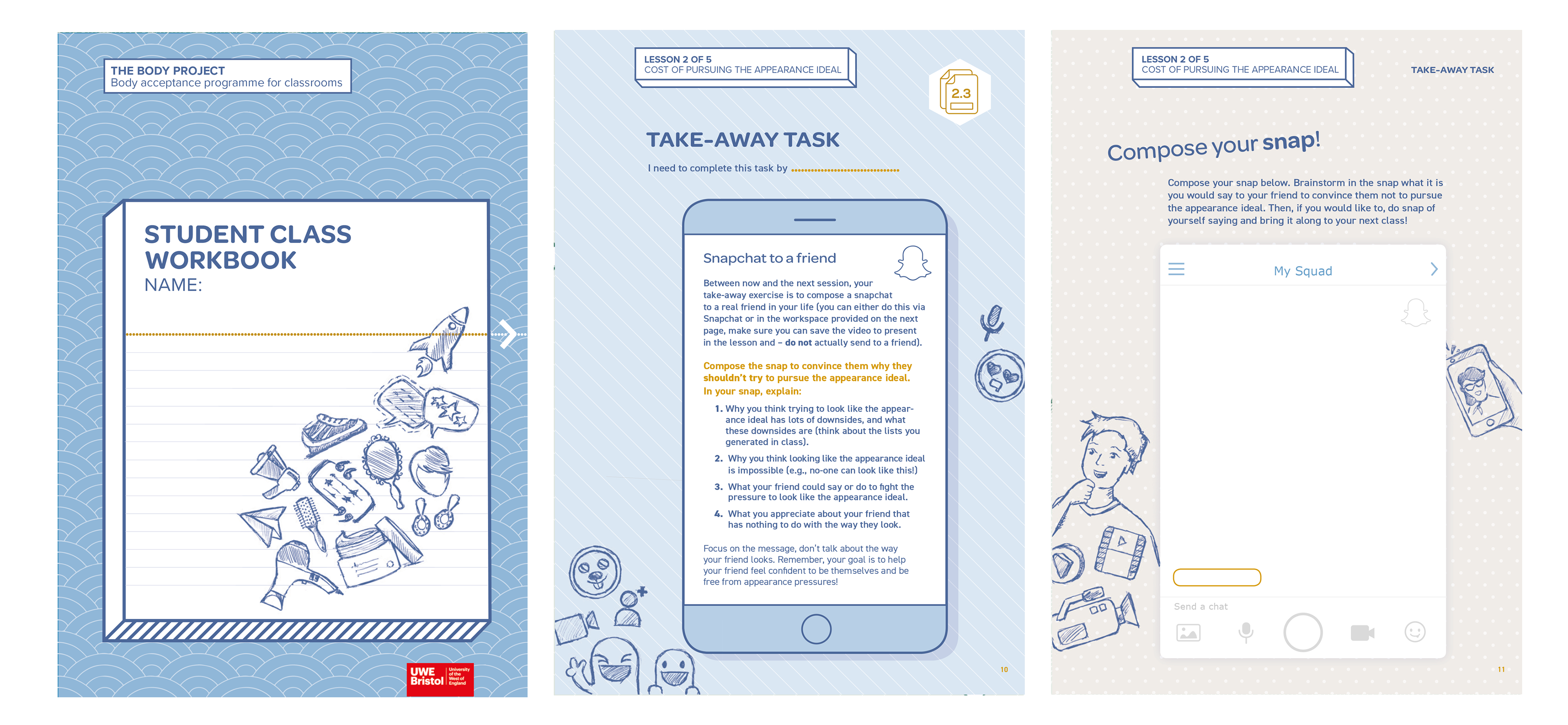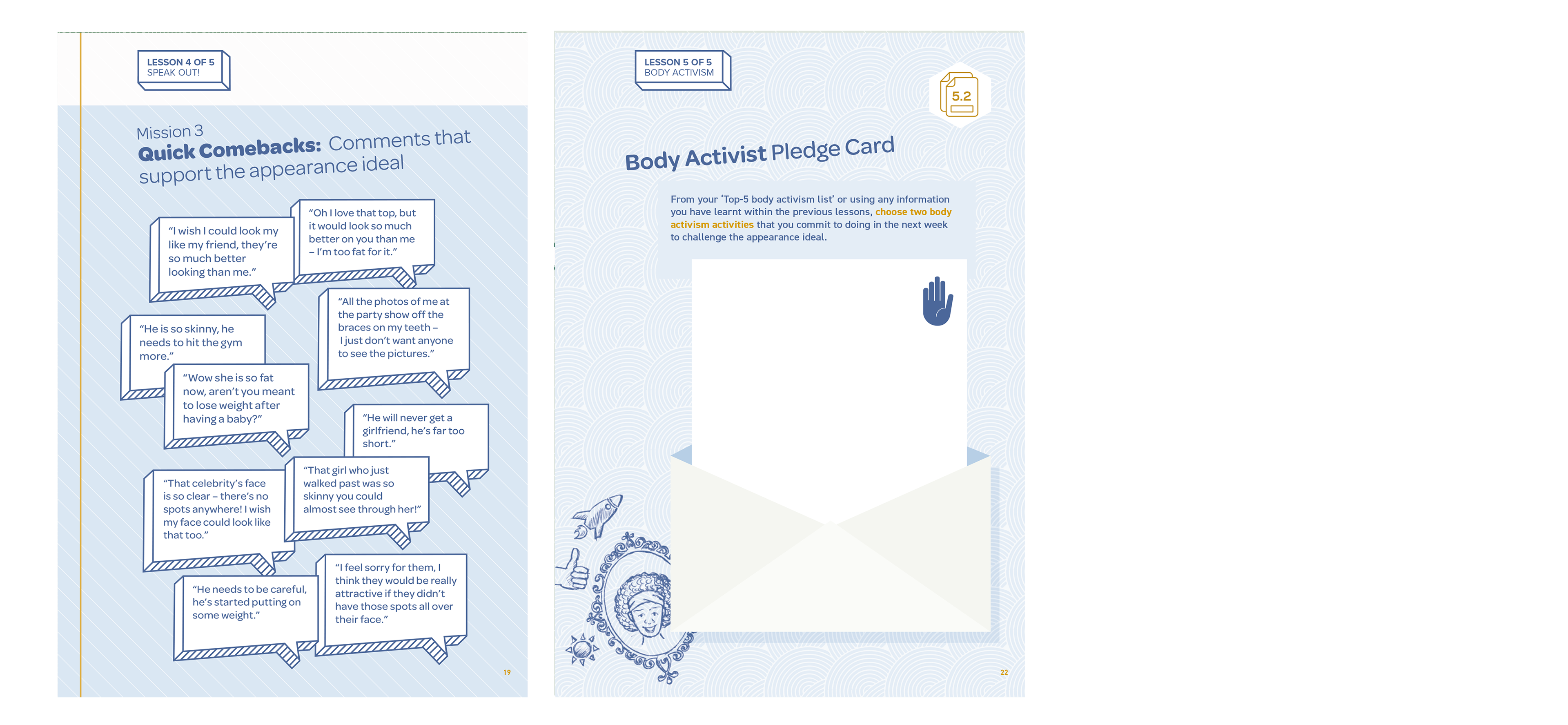 Design Concept and layout/illustrations of two programmes for body confidence aiming young girls and boys for the University of the West of England. Including digital student workbook, teachers guide and ppt presentation.